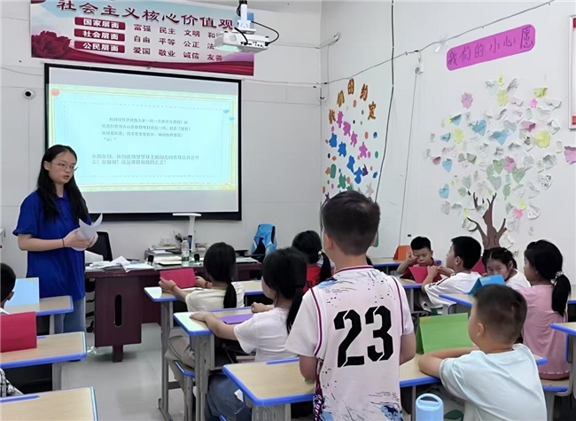 7月30日,江苏师范大学科文学院“黔苏薪跃,赤韵苗滋”爱国主义教育实践团为传承文化薪火走进了贵州省正安县土坪镇,在当地“希望小课堂”为留守儿童开启了一场兼具知识启蒙与文化浸润的暑期实践活动。活动聚焦地理认知启蒙、红色文化传承与非遗技艺体验,以趣味教学与手工实践相结合的方式为黔北留守儿童的暑期生活注入了丰富内涵。
