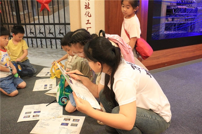 活动中,团队接待70余名参观的少年儿童,引导他们观看珍贵实物,用生动易懂的语言讲述在“四千四万”精神引领下,无锡乡镇企业如何“踏尽千山万水、吃尽千辛万苦、说尽千言万语、历尽千难万险”异军突起的故事,并陪伴他们完成“探访初心之旅”研学打卡任务。这趟听、看、做合一的趣味红色教育之旅,不仅拉近了孩子们与历史的距离,也让团队成员在服务中提升了专业实践能力、沟通协调能力和对客服务水平,深刻体会到理论与实践相结合的重要性。