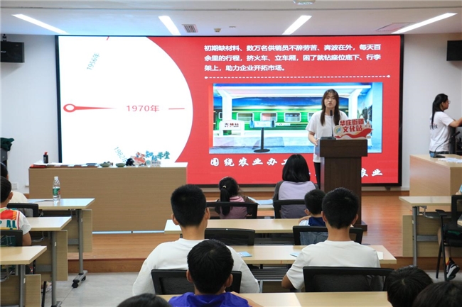 中国乡镇企业博物馆是团队的核心实践基地,团队成员发挥专业优势,在博物馆接待负责人景香梅和讲解员陈凌函的指导下,系统学习馆藏文物及背后故事,深入理解展陈脉络与场馆运营逻辑。期间,团队全程参与博物馆暑期“红色寻访”主题活动,成员主动承担志愿引导、讲解辅助、研学组织等工作,将课堂所学专业知识转化为服务实践的能力。