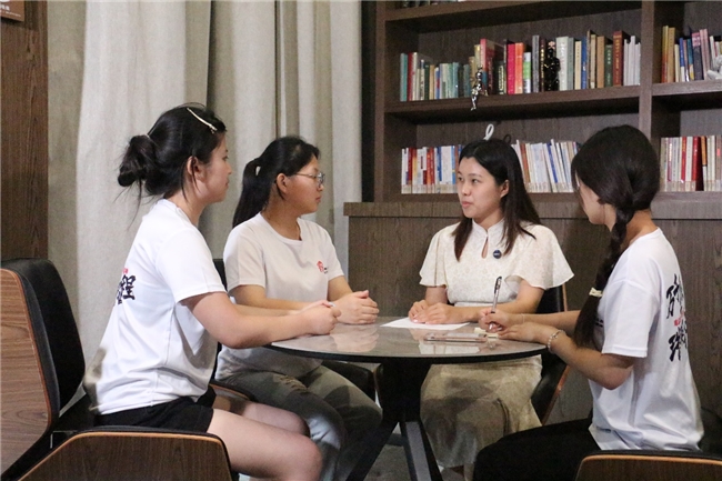 实践团成员采访中国乡镇企业博物馆讲解员陈凌函