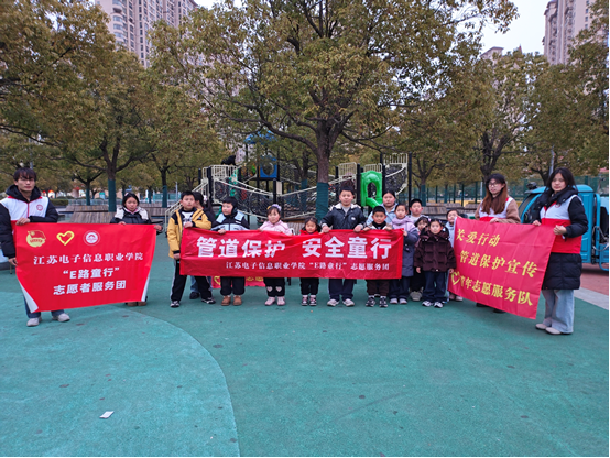 - 趣味宣讲筑牢安全防线丨江苏电子信息职业学院“E 路童行” 志愿服务团赴淮安市体育中心游乐场开展管道保护志愿宣讲